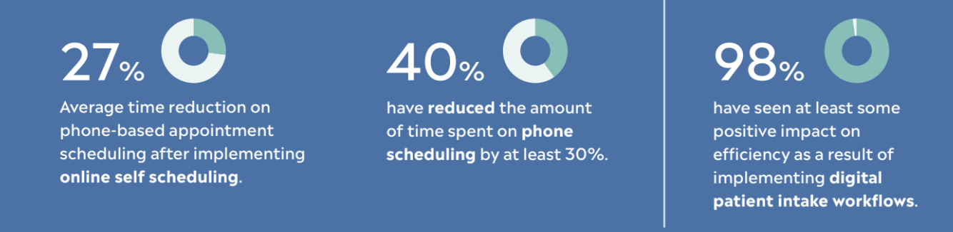 Organizations have achieved early successes as they’ve progressed in their digital transformation journeys. Many are leveraging digital self-service tools like online patient self scheduling and digital patient intake with some measure of success, underscoring the power of digital tools to drive operational efficiency.